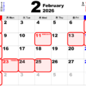 (カレンダーの赤枠が定休日となります。)